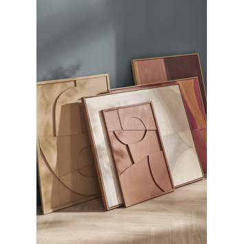 Met dit geometrisch abstracte kunstwerk aan je muur verfraai je niet alleen je interieur, het is ook nog eens een interessant gespreksonderwerp. Iedereen ziet er wel iets anders in terug. De muurdecaoratie is gemaakt van stevig MDF. Door het creëren van reliëf waarbij verschillende vlakken gebruikt zijn springt het zeker in het oog. De aardse bruine kleur zorgt er voor dat het niet storend overkomt. Hij heeft een afmeting van L70 x B90 cm en is daarnaast gemaakt van FSC®-gecertificeerd materiaal.