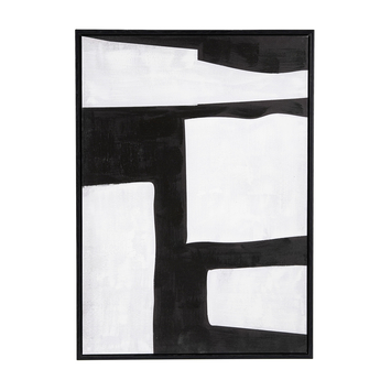 Met deze prachtige muurdecoratie loop je nu met veel plezier door de hal of de gang. Maar ook in de slaap- of woonkamer is dit kunstwerk een leuke verfraaiing. Hij is gemaakt van canvas en zijn zwart-witte kleur is gemakkelijk te combineren met verschillende kleuren. De muurdecoratie heeft een lengte van 70 cm, is 90 cm breed en heeft een hoogte van 3,5 cm. Hier wordt een grote liefhebber van abstracte kunst zeker blij van.