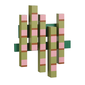 - Rechthoekige balkjes met roze, bruine en groene stroken