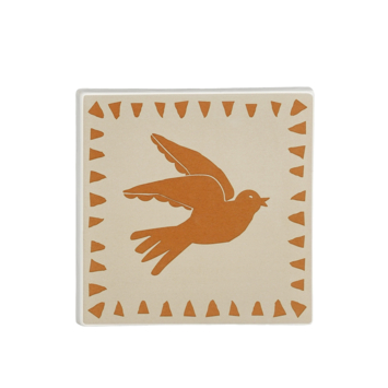Deze keramieken muurdecoratie brengt een speels en zonnig accent aan je interieur. De vliegende vogel in warme geeltint is omlijst met een grafisch patroon, wat zorgt voor een retro look. Leuk als los tegeltje of gecombineerd in een collage aan de wand. Door het compacte formaat ook perfect voor een kleine muur of nisje. De afmetingen zijn L12 x B12 x H1,5 cm.