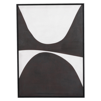 Maak een ruimte in huis helemaal af met leuke muurdecoratie. Dit schilderij valt op door de abstracte print in een zwart met witte kleur. Erg mooi voor in een modern interieur! Het kunstwerk is voorzien van een lijst in een zwarte kleur en heeft een afmeting van L50 x B70 cm. Heb jij er al een mooie plek voor gevonden?