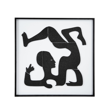 Deze muurdecoratie heeft een grappige weergave van een achterovervallend figuur. Een erg komische uitstraling en trekt zeker de aandacht. Dit kunstwerk is gemaakt van brandhout en past in elk interieur. Leuk voor in de hal of de gang, maar zeker ook een decoratieve toevoeging voor in de slaap- of woonkamer. De muurdecoratie is 60 cm lang, 2 cm breed en 60 cm hoog.