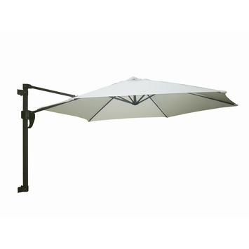 De muurparasol Sarezzo ecru d300 cm is een speciale muurparasol. De parasol kan aan de muur bevestigd worden en als die niet gebruikt wordt kan die tegen de muur aan worden ingeklapt. Door de bijgeleverde beschermingshoes kan je de parasol beschermen van weersinvloeden. De muurparasol Sarezzo heeft een diameter van 300 centimeter en een beschermingsfactor van 30. Onder het ecru kleurig polyester doek en een stevig aluminium frame kun je zorgeloos uit de zon zitten.