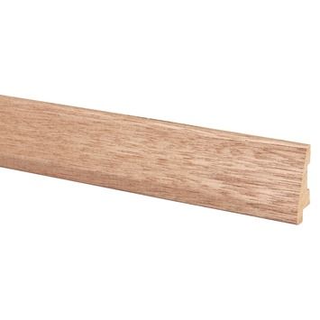 Deze muurplint van massief cambara past bij diverse soorten massief houten vloeren. De plint wordt aan de muur gekit of gespijkerd.