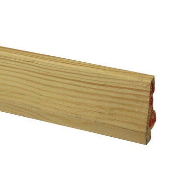 Deze muurplint massief grenen is een bijpassende plint voor grenen vloerdelen (artikelnummer: 381725). De plint wordt aan de muur gekit of gespijkerd.