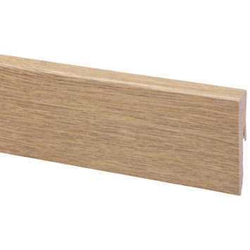 De muurplint model blok is een MDF muurplint voorzien van een decorfolie die exact past bij het Karwei laminaat Natural Living Koren (art.nr. 110983). De muurplint kan met behulp van de gepatenteerde CanDo zwarte plintclip I (art.nr. 243965)'onzichtbaar' aan de muur worden bevestigd en blijft dan gemakkelijk demontabel en opnieuw plaatsbaar wanneer nodig. De plint heeft een lengte van 240cm, een hoogte van 58mm en een diepte van 12mm na montage. Het mdf is PEFC gecertificeerd en daarmee afkomstig uit duurzaam beheerde bossen. Afneembaar met vochtige doek en niet-agressief schoonmaakmiddel.
