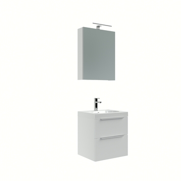 Muza is een speels, modern en compact badkamermeubel. De luxe designmeubelgrepen geven cachet aan het grijs eiken, donker eiken of hacienda zwarte meubel. Het wastafelmeubel heeft ongelijke lades met een mooie, aluminium greeplijst en is voorzien van een helderwitte wasbak, dat mooi contrasteert met de houtmaterialen. Muza heeft zeer praktische afmetingen en is daarmee altijd een functionele maar ook rijke aanwinst voor je badkamer.