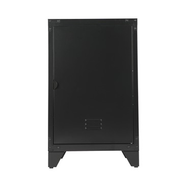 Nachtkastje Jax metaal grijs is een functioneel en modern uitziend nachtkastje gemaakt van metaal met een vergrijsde zwarte coating. Het meubel bestaat uit 1 vak met een deur. Het nachtkastje is handig voor naast je bed om spullen in op te bergen. Het past in veel stijlen en ruimtes in het huis en heeft een strak uiterlijk. Nachtkastje Jax is ook verkrijgbaar in een lockerkast laag van 122 of een lockerkast van 190 centimeter hoog.