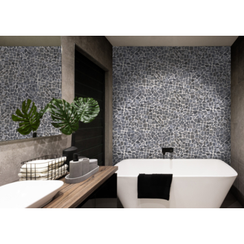 Met deze Natura Stone steenstrip voor wanden breng je een natuurlijke sfeer binnen iedere ruimte. Deze kiezels zijn geschikt voor buiten en binnen, want ze zijn namelijk vorstbestendig. De stenen zijn vastgezet op matten van 30 x 30 cm. Daardoor zijn ze eenvoudig te plaatsen en ben je niet steen voor steen aan de wand aan het lijmen.
