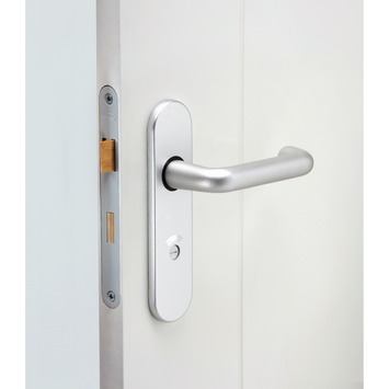 Het Nemef badkamer/wc- slot 63mm met RVS voorplaat is een slot om je wc of badkamer af te sluiten. Door de universele maatvoering vervangt dit slot eenvoudig je bestaande slot. Dit slot kan op een naar binnen- of naar buitendraaiende deur zowel links als rechts geplaatst worden. De voorplaat is 174mm lang en de slotkast is circa 80mm bij 117mm. Verpakt per stuk inclusief sluitplaat, bevestigingsmateriaal en een duidelijke montagehandleiding.