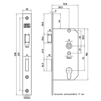 NEMEF 500 serie insteekcilinderslot binnendeur wit Doorn 50mm PC 72mm48.99