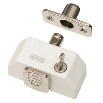 De Nemef druksluiting raam SKG1 wit 2 stuks zijn afsluitbare gelijksluitende druksluitingen voor het beveiligen van je draairamen, bovenlichten, schuifpuien en/of klepramen uitgevoerd in de kleur wit. De druksluitingen hebben naast het Politiekeurmerk Veilig Wonen een SKG1 keurmerk. Producten met SKG1 zijn in combinatie met andere inbraakwerende voorzieningen ten minste 3 minuten inbraakwerend. Kan zowel links als rechts op je raam geplaatst worden. Voor naar binnen draaiende ramen: pas je de speciale sluitplaat P2565/12 toe. Verpakt per 2 stuks, inclusief bevestigingsmateriaal, sleutel en montagehandleiding.