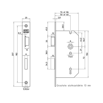 NEMEF insteekslot rechts Doorn 50mm PC 72mm