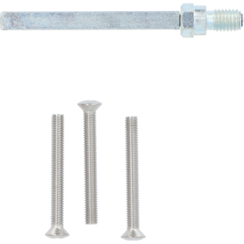 Complete Nemef montageset voor toepassing van Nemef aluminium kruk/knop veiligheidsbeslag op deuren met een dikte van 58-62mm. De set bestaat uit een wisselstift en 3 RVS schroeven. De set is uitgevoerd in zilverkleur/F1.