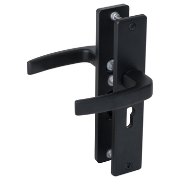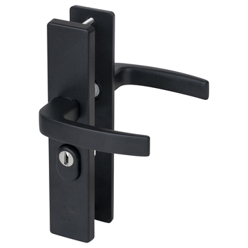 Het Nemef veiligheidsbeslag 3417-II met kerntrekbeveiliging en een afstand van 55 of 72 mm is speciaal voor gebruik op buitendeuren. Het heeft deurkrukken aan beide zijden en is voorzien van een hoogwaardige en stijlvolle zwarte structuur afwerking. Het beslag is SKG***® gecertificeerd en hierdoor extra veilig. De lengte van de schilden bedraagt 245mm en dekt hiermee bijna alle oude deurschilden af. Tot slot is dit beslag geschikt voor montage op deuren met een dikte 38-57mm, dus past dit in nagenoeg alle situaties.