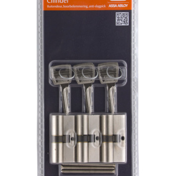 De Nemef veiligheidscilinder is een profielcilinder voorzien van zowel het SKG 2-sterren keurmerk als het Politiekeurmerk Veilig Wonen. Producten met het SKG 2-sterren keurmerk voorkomen zelfstandig het binnendringen van inbrekers met ten minste 3 minuten, of in combinatie met andere inbraakwerende voorzieningen met ten minste 5 minuten. Hierdoor ben je zeker van een goede beveiliging van het slot. Omdat de veiligheidscilinder is voorzien van dit keurmerk wordt deze geadviseerd voor buitendeuren. Voor een optimale veiligheid is de deur dan ook voorzien van een slot en deurbeslag met het SKG keurmerk. De maat van deze cilinder is 30/30 mm wat de meest gangbare maat is zodat deze geschikt is voor de meeste (buiten)deuren van 40 tot 42 mm dikte. Dit artikel wordt geleverd als set van drie gelijksluitende cilinders inclusief 6 sleutels en bevestigingsbouten. Omdat de cilinders gelijksluitend zijn kun je alle deuren met dezelfde sleutel openen, dat is wel zo handig.