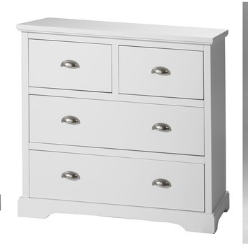 De ladekast Nice uit de serie Provence heeft 4 laden. Elke lade is voorzien van solide metalen ladegeleiders. Het materiaal is van hoogwaardig MDF dat in de kleur wit is afgelakt. De lades zijn voorzien van metalen komgrepen. Deze ladekast, afmeting (hxbxd): 85x90x39 cm, is o.a. geschikt als opbergmeubel voor adminstratieve papieren en/of handig in de hal/ gang voor het opbergen van diverse accessoires zoals sjaals, handschoenen, sleutels en op de slaapkamer voor het opbergen van sokken, ondergoed. Een multifuctionele kast die overal geplaatst kan worden slaapkamer, kantoor, woonkamer en hal/gang.