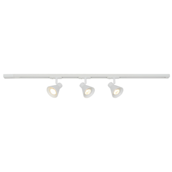 De Nordlux 3-spot railverlichting Eik Link 35W GU10 fitting in wit met 1 meter rail is een complete set voor gerichte verlichting. Deze set bestaat uit drie spots en een 1 meter lange Nordlux Link rail, waarmee je meerdere plekken tegelijk kunt verlichten in bijvoorbeeld de keuken, hal of werkkamer. Elke spot heeft één GU10 fitting en ondersteunt een lichtbron tot maximaal 35W. De lichtbronnen worden niet meegeleverd, zodat je zelf kiest welke GU10 lampen je gebruikt. De set werkt op 220–240V.