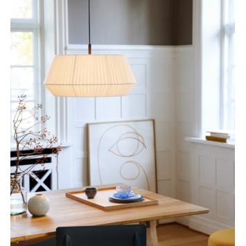 De Nordlux Dicte hanglamp wit 60W – E27 is een moderne oplossing voor wie sfeer en stijl wil samenbrengen in huis. De royale, geplooide kap van textiel in helder wit zorgt voor een gelijkmatige lichtverdeling en geeft een luchtig en elegant effect. Dit armatuur is ideaal boven een eettafel, in een ruime hal of als centrale verlichting in een open woonruimte.