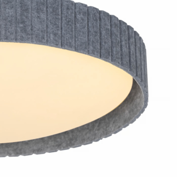 De lamp is ontworpen voor gebruik binnenshuis en heeft een IP20-classificatie. Het grijze textiel zorgt voor een rustige en neutrale uitstraling, en vormt een mooie aanvulling op lichte of natuurlijke interieurs. De lichtval is niet richtbaar en verspreidt zich egaal over de ruimte.