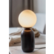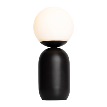 De gedraaide vormen kenmerken deze mooie tafellamp, die symbool staat voor elegant design. Tegelijkertijd vormt de mannelijke voet van mat metaal een leuk contrast met het chique koepelvormige glazen scherm, dat zorgt voor visueel volume en een zacht licht.