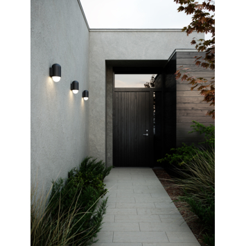 De wandlamp Heka heeft een zeer uniek en modern design: ronde vormen en een zacht, naar beneden gericht licht. De lamp neemt niet veel ruimte in maar garandeert een goede verlichting langs je pad, oprit of welke andere buitenruimte dan ook.