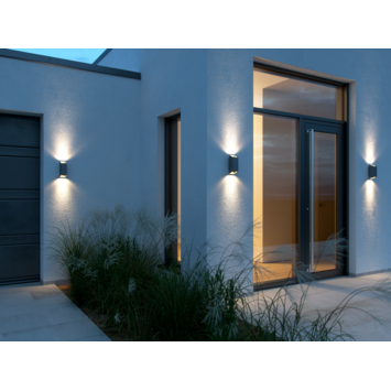 De Nico Square 22 wandlamp van Nordlux heeft een strak en modern design dat perfect past in elke buitenruimte. De antraciet kleur en het rechthoekige formaat zorgen voor een tijdloze uitstraling die moeiteloos integreert met diverse architectuurstijlen. De dubbele lichtbron zorgt voor een mooi lichteffect op jouw muren. De lamp is gemaakt van hoogwaardig aluminium, wat langdurige prestaties garandeert. Dankzij de IP54 beschermingsgraad is de lamp bestand tegen zowel stof als waterstralen, wat hem ideaal maakt voor gebruik in buitentoepassingen zoals tuinen en opritten. De stevige constructie zorgt voor een lange levensduur, zelfs in de meest veeleisende weersomstandigheden. De Nico Square 22 is uitgerust met een GU10 fitting en is geschikt voor 2 LED-lichtbronnen van maximaal 35 watt. Hoewel de lampen niet zijn inbegrepen, biedt dit de flexibiliteit om de gewenste lichtsterkte en kleurtemperatuur te kiezen. Dankzij de dimfunctie kan je de helderheid aanpassen en de gewenste sfeer creëren, of je nu geniet van een rustige avond in de tuin of een feestje geeft. Gemakkelijk te installeren en te bedienen via een standaard wandschakelaar, biedt deze wandlamp zowel functionaliteit als esthetische waarde.