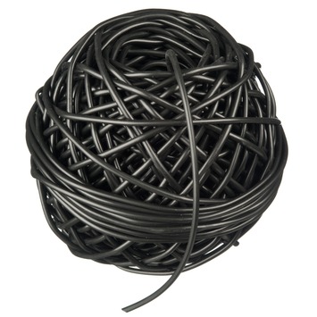 Elastisch bindbuis zwart 50 m op een rol Ø 3 mm, uitermate geschikt om takken van bomen vast te binden aan een frame, een paal of stok. Geen insnoering en ingroeiïng dankzij de elastische eigenschappen.