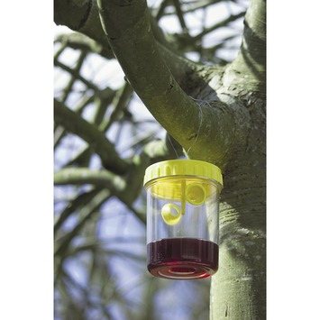 De Nortene wespenval is ideaal voor het vangen van wespen. Je kunt de wespenval vullen met bijvoorbeeld honing of zoete limonade. De wespenval is 13,5 centimeter hoog en heeft een diameter van 9 centimeter. Je kunt de wespenval met buhlp van een draadje ophanden aan een boom bijvoorbeeld.