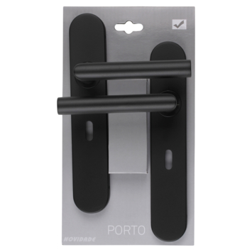 De Porto deurkruk op langschild met sleutelgat (56 mm) in zwart geborsteld RVS biedt een stijlvolle en tijdloze toevoeging aan je interieur. Het hoogwaardige geborstelde RVS zorgt voor een verfijnde, moderne look die goed aansluit bij een eigentijdse woonstijl. De deurkruk is stevig gemonteerd op het schild en voorzien van een veer, waardoor de kruk netjes op zijn plek blijft zonder te gaan hangen.