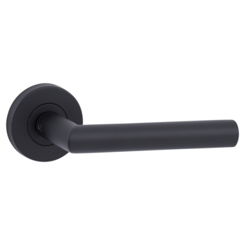 De deurkruk Porto met rond rozet in zwart geborsteld RVS heeft een strak en tijdloos design dat goed past bij verschillende interieurstijlen. Het rozet is stevig gemonteerd, en de deurkruk is uitgerust met een veer, zodat de kruk netjes in positie blijft. Dit voorkomt dat de kruk gaat hangen.
