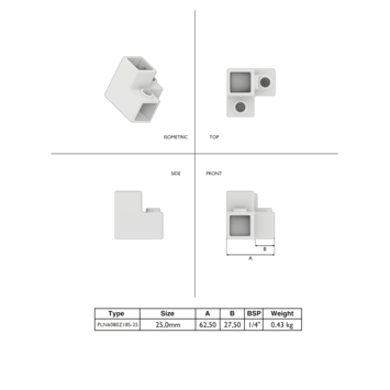 Novidade steigerbuis koppelstuk vierkant kniestuk ø 25 mm11.79
