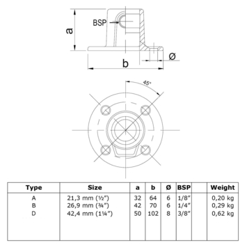 Novidade steigerbuis koppelstuk voetplaat verzinkt ø 42 mm