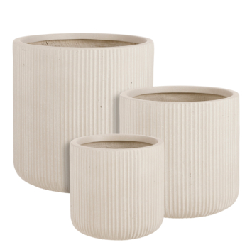 De Nuovo pot rond beige set bestaat uit 3 ronde potten in verschillende formaten: h25 x d25 cm, h30 x d30 cm en h36 x d37 cm. De potten zijn uitgevoerd in beige en worden geleverd als set op een pallet. Door de variatie in hoogtes en diameters creëer je eenvoudig een speels effect in je tuin, op je terras of in huis.