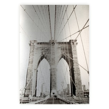 NY metal 100 x 70 cm is een zwart-witte weergave en past daardoor vrijwel in ieder interieur op de muur. Beide prints zijn foto's van New York en geven een prachtig beeld van de Brooklyn Bridge en een karakteristiek appartementencomplex in de straten van New York. Deze prints geven elke ruimte een levendige uitstraling. Het frame is 100 centimeter hoog en 70 centimeter breed.