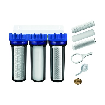 De O'Pure Triplex filterkit verwerkt regenwater in drie stappen voor optimaal resultaat. De 80 µm voorfiltratie verwijdert grove vuildeeltjes, gevolgd door een 25 µm fijnfilter voor kleinere deeltjes. Het actieve koolpatroon zorgt voor geur- en kleurloos water, ideaal voor huishoudelijk of tuingebruik. De kit bevat alles voor een snelle en overzichtelijke installatie: beugel, schroeven, dichtingen, sleutel en teflon. Met de 3/4" aansluiting monteer je de filter direct op bestaande leidingen. Zo heb je een compacte, complete oplossing voor regenwaterrecuperatie, met minimale inspanning en effectief resultaat. Bestel deze O'Pure Triplex filterkit bij Karwei.