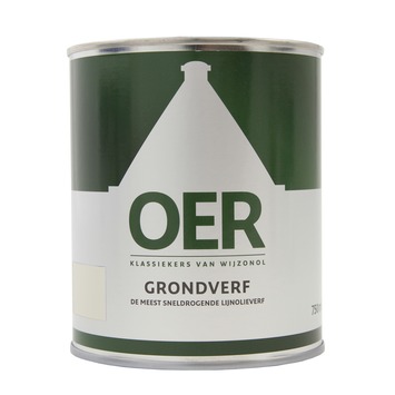 De Oer Grondverf wit 750ml is een universeel toepasbare lijnolie grondverf, die voldoet aan de eisen van nu en rekening houdt met de toekomst en ons milieu. Deze hoogvullende, prettig verwerkbare lijnolie grondverf vormt de basis voor goed en hoogwaardig schilderwerk op houten kozijnen, ramen, deuren, gevelbetimmeringen en dergelijke. De OER lijnolie Grondlak zorgt voor een zeer goede hechting op onbehandeld hout en (voor)behandeld hout, metaal en kunststof en is geschikt voor buiten en binnen. Voor echt vakwerk met een authentieke kwaststreep. Gebruik voor een optimaal resultaat een speciale OER kwast en een kortpolige of mohairroller. OER Grondverf is vochtregulerend en heeft een zeer goede vloei. De grondverf is wit van kleur en heeft een hoogglans afwerking. Het blik bevat 750 milliliter dekkende lijnolieverf OER Grondverf in de kleur wit, dit is genoeg voor het gronden van een oppervlakte van zo’n 9 tot 14 vierkante meter. Lijnolieverf heeft in de regel een langere droogtijd dan de alkyd buitenlakken.