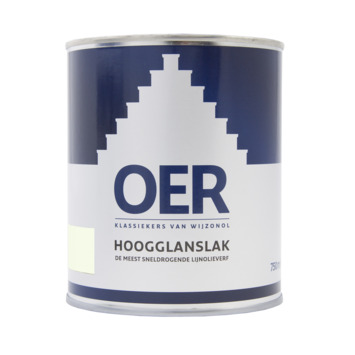 De OER Hoogglanslak roomwit 1916-010 750ml is een karakteristieke, hoogglanzende lijnolieverf, die voldoet aan de eisen van nu en rekening houdt met de toekomst en ons milieu. Deze prettig verwerkbare, hoogglanzende lijnolieverf heeft een uitstekende buitenduurzaamheid tot wel 6 jaar en is geschikt voor buiten en binnen. OER Hoogglanslak kan worden toegepast op voorbehandeld hout, zoals houten kozijnen, ramen, deuren, gevelbetimmeringen; maar ook op metaal en kunststof en op bestaand. Voor echt vakwerk met een authentieke kwaststreep. Gebruik voor een optimaal resultaat een speciale OER kwast en een kortpolige of mohairroller. OER Hoogglanslak heeft na droging nog een tijdje een lichte kleef. Maak daarom de ruiten en andere aangrenzende oppervlakken voor en na het afschilderen regelmatig schoon om lekstrepen en vuilaanhechting te voorkomen. Het kleven verdwijnt als de verflaag helemaal is doorgehard, dit duurt enkele maanden. De lak is roomwit van kleur en heeft een hoogglans afwerking. Het blik bevat 750 milliliter dekkende lijnolieverf OER Hoogglanslak, dit is genoeg voor een oppervlakte van zo’n 8 tot 13 vierkante meter. Lijnolieverf heeft in de regel een langere droogtijd dan de alkyd buitenlakken.