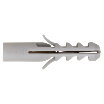 De OK Basisplug nylon Ø 6mm, de meest gebruikte plug voor toepassing in massieve bouwmaterialen, zoals beton en massieve steen. U koopt de basisplug per 200 stuks. De basisplug is 30mm lang en heeft diepe vertanding. Zo bevestigt u met deze plug middelzware materialen aan muren en wanden, bijvoorbeeld schilderijen, plinten en legplanken. De Wij adviseren een schroef van tussen 3,5 en 5mm te gebruiken met een lengte van 35mm. Als minimale boordiepte adviseren wij 35mm aan te houden.