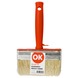 De OK blokkwast universeel 3 x 12 cm is een blokkwast die je gebruikt voor muurverf plafondverf en primer op water- en terpentinebasis. Met een breedte van 12 centimeter is deze kwast geschikt voor grote oppervlakken die je snel wilt schilderen. Je kunt de blokkwast gebruiken op ruwe ondergronden van MDF baksteen hout kunststof en metaal. De synthetische haren nemen de verf goed op en geven het gelijkmatig af wat handig is bij watergedragen verf. Het handvat is van kunststof en is bestand tegen vocht. Deze blokkwast is geschikt voor snelle klussen waarbij je veel oppervlakte in één keer wilt bedekken.