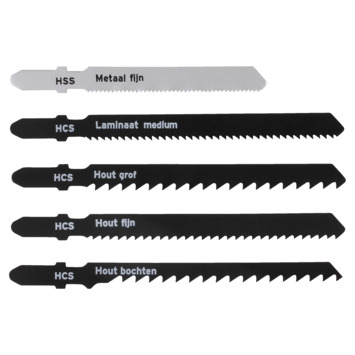 - ok decoupeerzaagset met t-aansluiting: geschikt voor (invallend) zagen van hout (grof en fijn), metaal en laminaat.