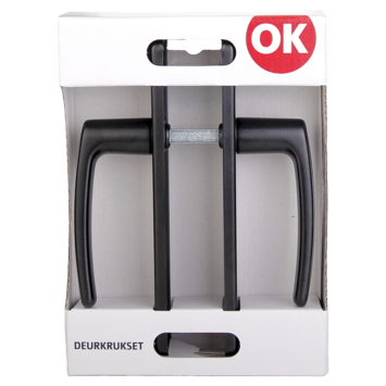 OK deurkruk set Blok recht blind schild zwart aluminium