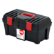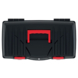 OK gereedschapskoffer met twee handige rode sluitingen.
