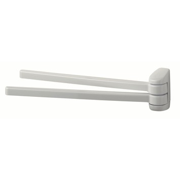 De OK handdoekrek 2-armig wit is gemaakt van wit kunststof. Deze serie is zeer aantrekkelijk geprijsd en is het instapmodel van ons aanbod in sanitair accessoires. Altijd handig zo'n draaibare handdoekhouder. Het model neemt weinig ruimte in beslag en je hebt toch plaats voor twee handdoeken.