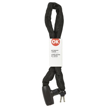 OK kettingslot 90cm met hangslot zwart is van gehard staal, wat moeilijk door te knippen is. Een kettingslot wordt veelal gezien als het veiligste fietsslot. Het slot heeft een zwarte hoes eromheen, dit voorkomt beschadigingen aan je fiets of scooter. Wil je zekerheid, ga dan voor het Dyto kettingslot met hangslot zwart.