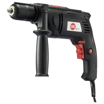 De OK klopboormachine KB-710 is een sterke boormachine voor klusjes in en om het huis. Met een maximaal vermogen van 710 watt en maximaal aantal toeren van 2800 per minuut boor je zonder problemen in het te boren materiaal. Het snoer van de OK klopboormachine KB-710 is twee meter.