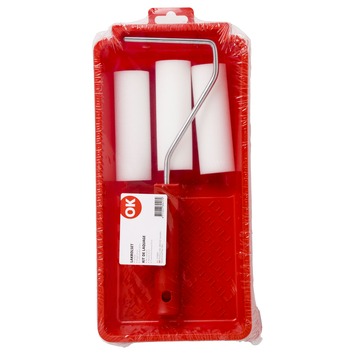 De OK lakset universeel 10 cm (5-delig) gebruik je voor het lakken van hout of metaal met verf op waterbasis, terpentinebasis of olie. De set bestaat uit een schuimroller van 10 centimeter en een van 5 centimeter, allebei met beugel, en een verfbak. Dankzij de verschillende breedtes kun je grote vlakken én kleinere delen aanpakken.