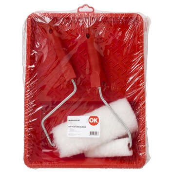 Met de OK muurverfset 10 cm en 18 cm (5-delig) heb je alles in huis om muren en plafonds te schilderen met verf op waterbasis. In de set zitten twee rollers, één van 10 centimeter en één van 18 centimeter, allebei met beugel, en een verfbak waarin je de verf makkelijk kunt aanbrengen. Je gebruikt deze set op gladde tot matig ruwe ondergronden zoals pleisterwerk of beton. De rollers hebben een vestan vacht die de verf gelijkmatig verdeelt. Door de verschillende maten kun je grote vlakken en kleinere randen in één moeite door aanpakken. De beugels hebben een diameter van 6 millimeter.