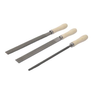 De OK raspenset bestaat uit 3 verschillende raspen voor houtbewerking: een platte, een ronde en een halfronde stalen rasp. Een rasp voor houtbewerking is een grofgetande vijl die wordt gebruikt om een teveel aan hout te verwijderen of een speciale vorm aan het hout te geven. De 290 millimeter lange raspen zijn voorzien van een stevige prettig in de hand liggende handgreep.