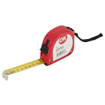 De OK rolmaat 5 m is een klassieke rolmaat met een metalen meetlint van 5 meter lang en 17 millimeter breed. Het meetlint, verpakt in een kunststof behuizing, is duidelijk afleesbaar en kan tijdens het meten worden vergrendeld. Na meting rolt het meetlint soepel op. Een rolmaat is een praktisch gereedschap om altijd in je gereedschapskoffer te hebben.